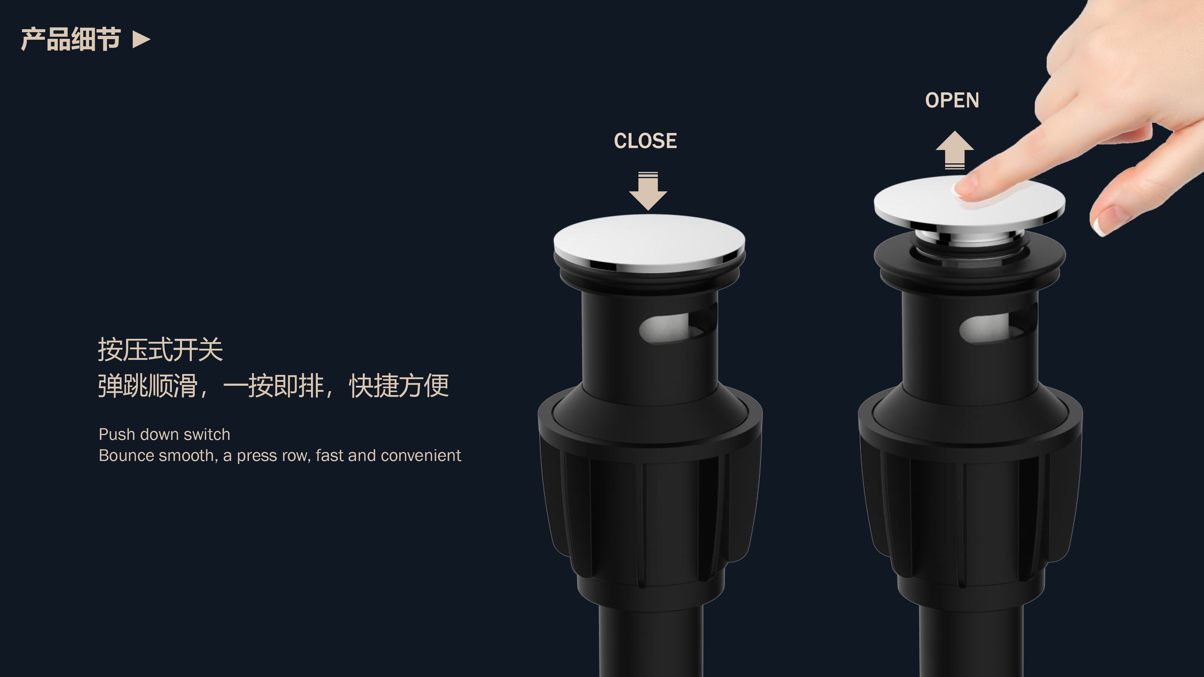 彈跳式排桿;可取出彈跳提籃,防止堵塞,快速清潔