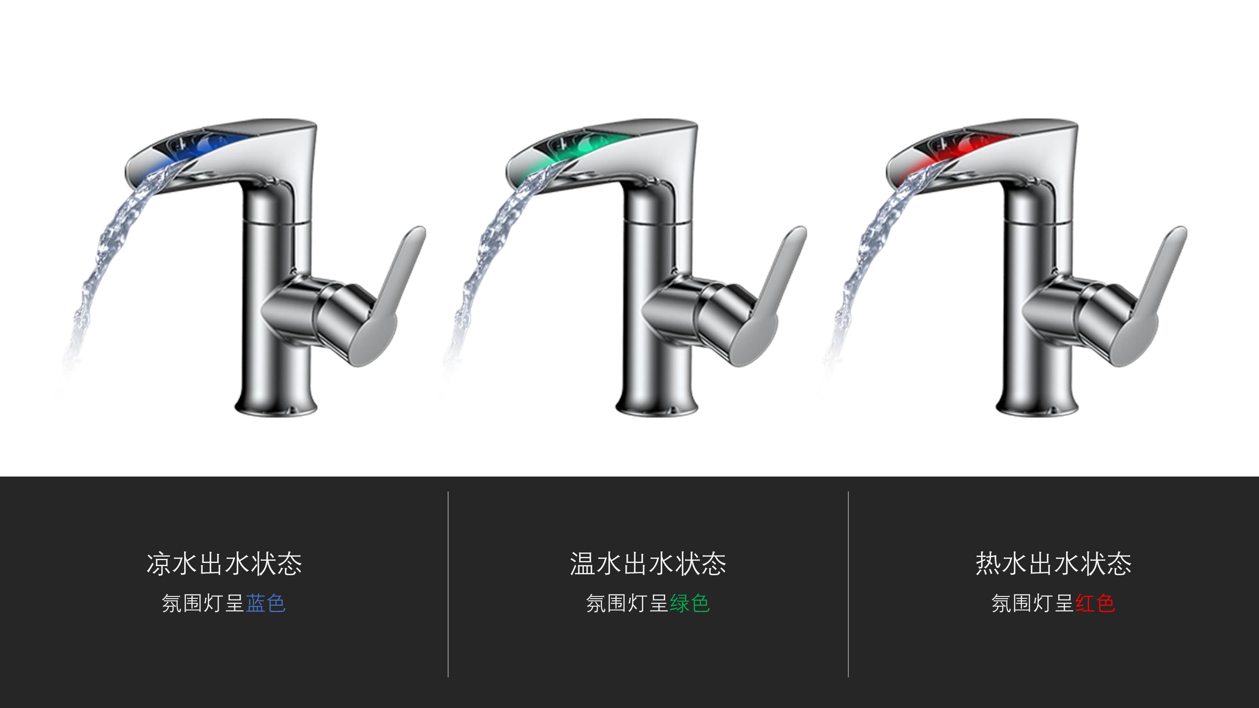 CUPC/ WaterSense/ NSF61/ AB1953(NSF372)認(rèn)證;簡約時(shí)尚設(shè)計(jì);加厚陶瓷閥芯,開合順暢,有效防滴漏;LED三種顏色-涼水呈藍(lán)色、溫水呈綠色、熱水呈紅色