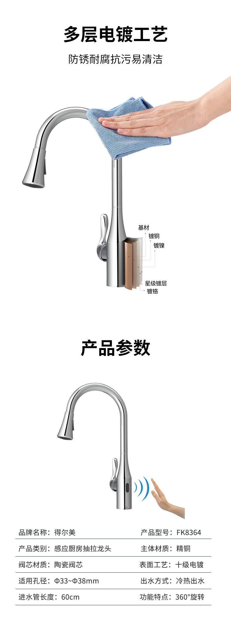 FK8364 感應(yīng)雙控廚房抽拉龍頭